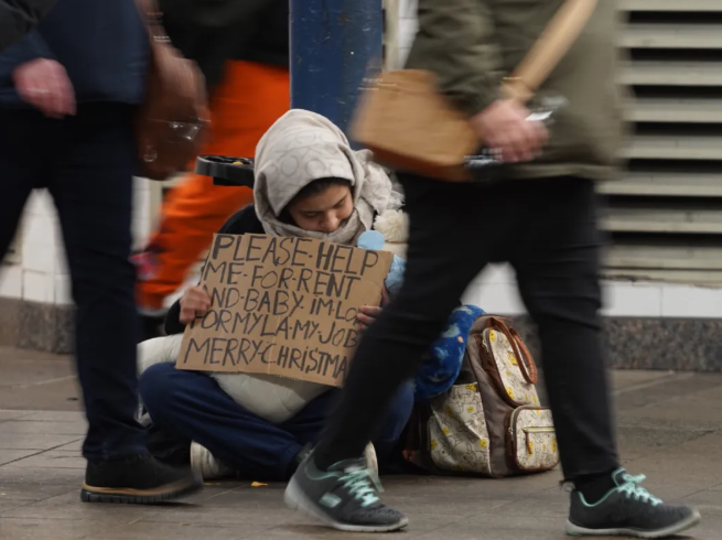 时值岁末,在美国纽约时常可见无家可归者和其他寻求救助的人们。图为12月17日,一名女子在纽约曼哈顿一处地铁站寻求救助 图源:新华社