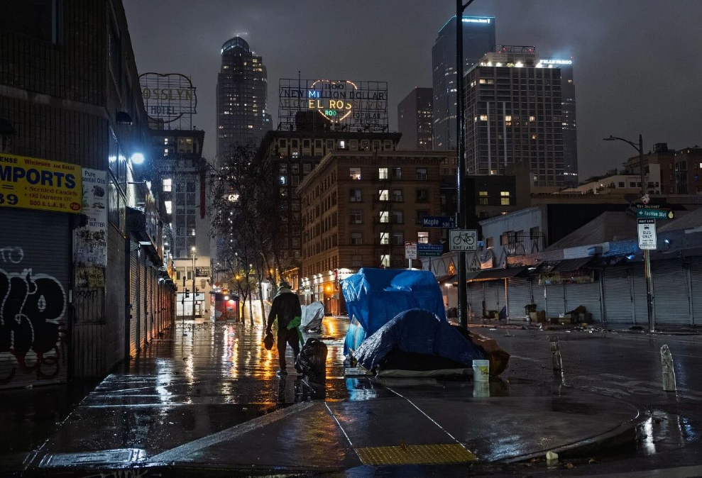 当地时间12月24日,在美国洛杉矶市中心街头露宿的无家可归的人 图源:视觉中国